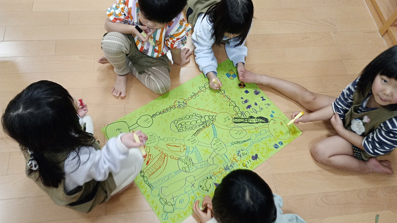 すごろくは、皆で話し合いながら作ることも楽しんでいました!おもしろいアイディアがいっぱいの楽しいすごろくができました。